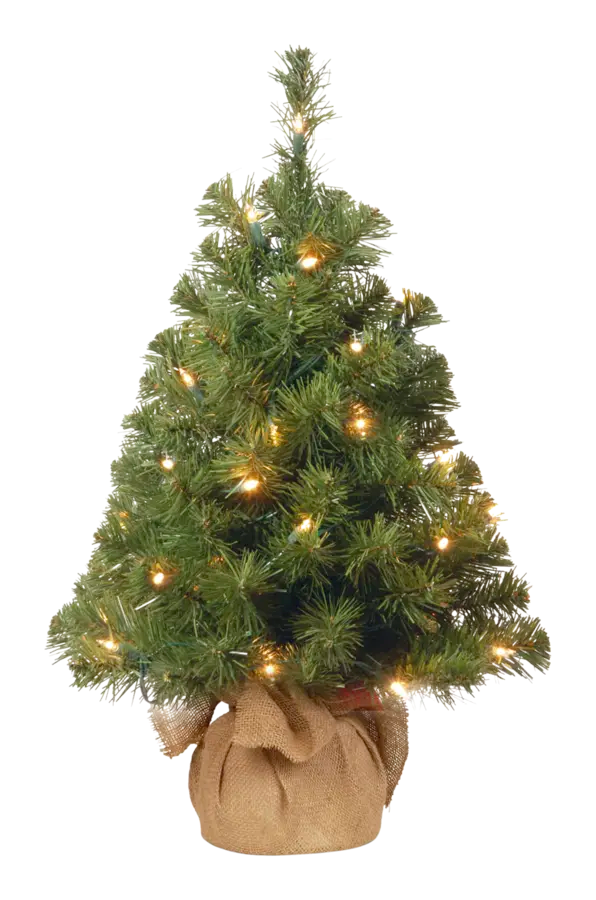 L'arbre de Noël artificiel New Noble est doté d'aiguilles vertes flexibles et de 35 lumières LED intégrées. Il est accompagné d'une base en toile de jute pour un aspect atmosphérique. Fonctionne sur piles. Idéal pour les coins d'ambiance.