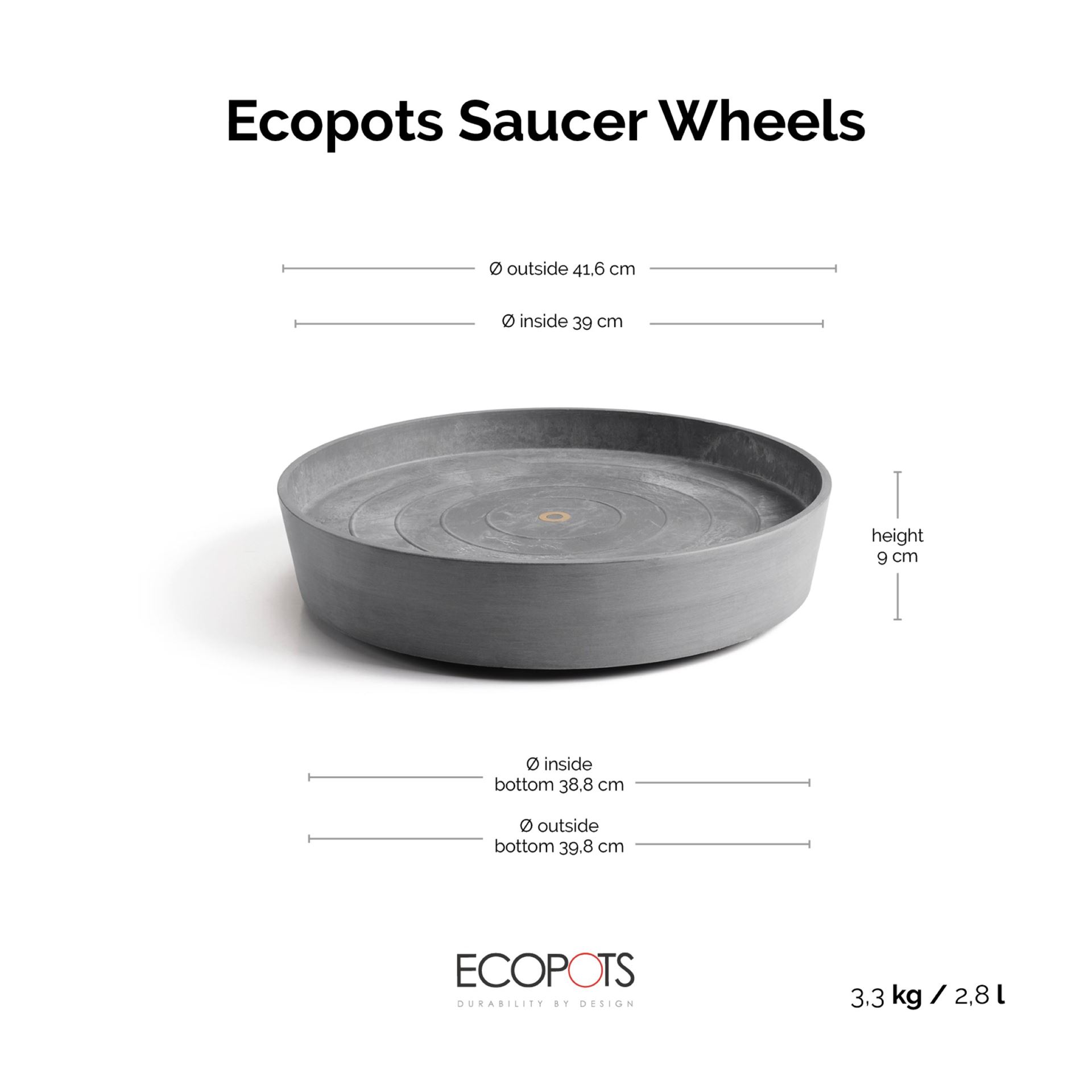 Soucoupe à roulettes Ecopots - Ronde - Gris - Diamètre 41,6 x H9 cm