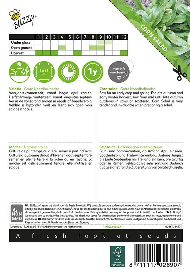 Informations sur le produit "Buzzy® Graines de salade de maïs - Grandes graines de Hollande du Nord"