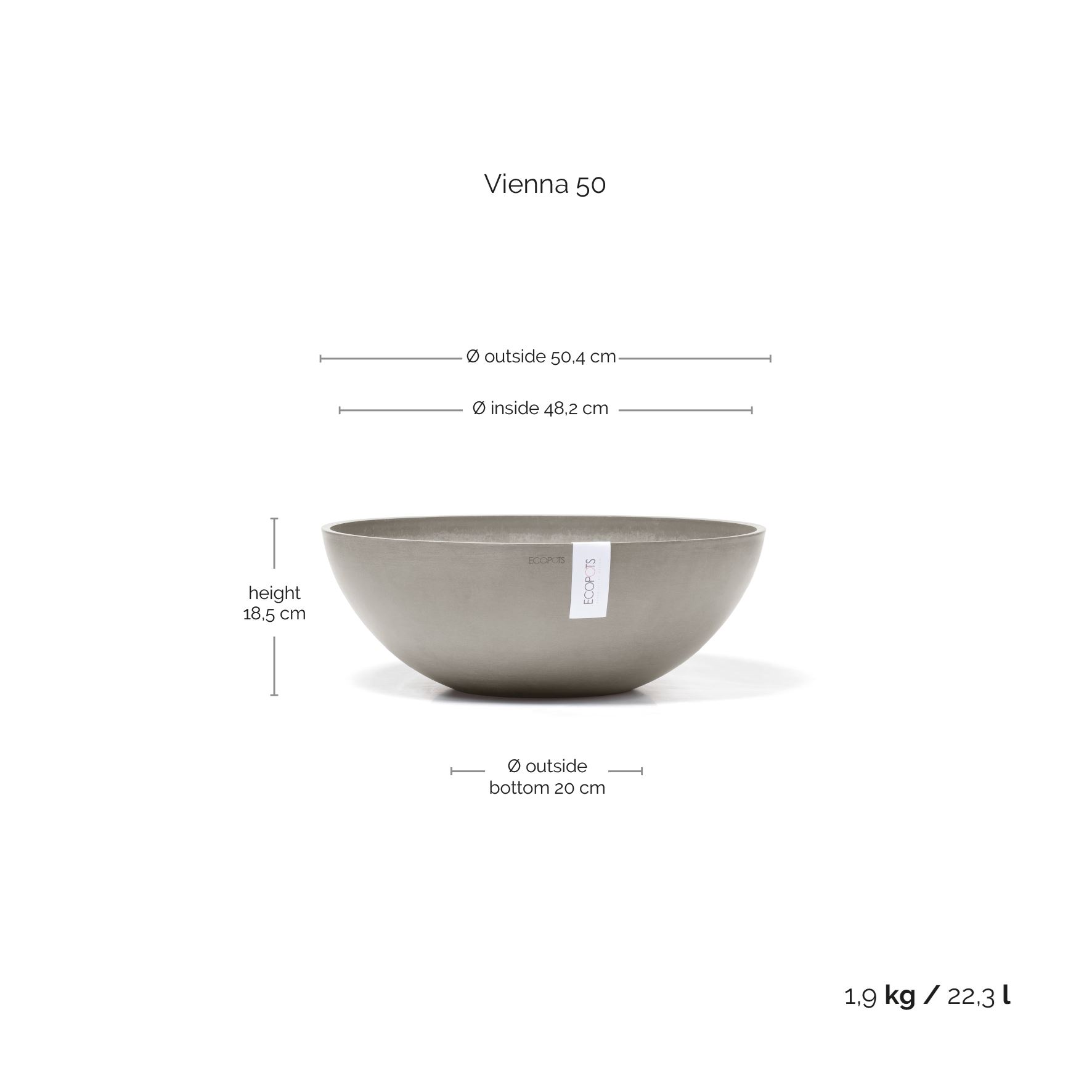 Informations sur le produit "Ecopots pot de fleurs Vienna 50 - Rond - Taupe - Diamètre 50,4 x H18,5 cm"