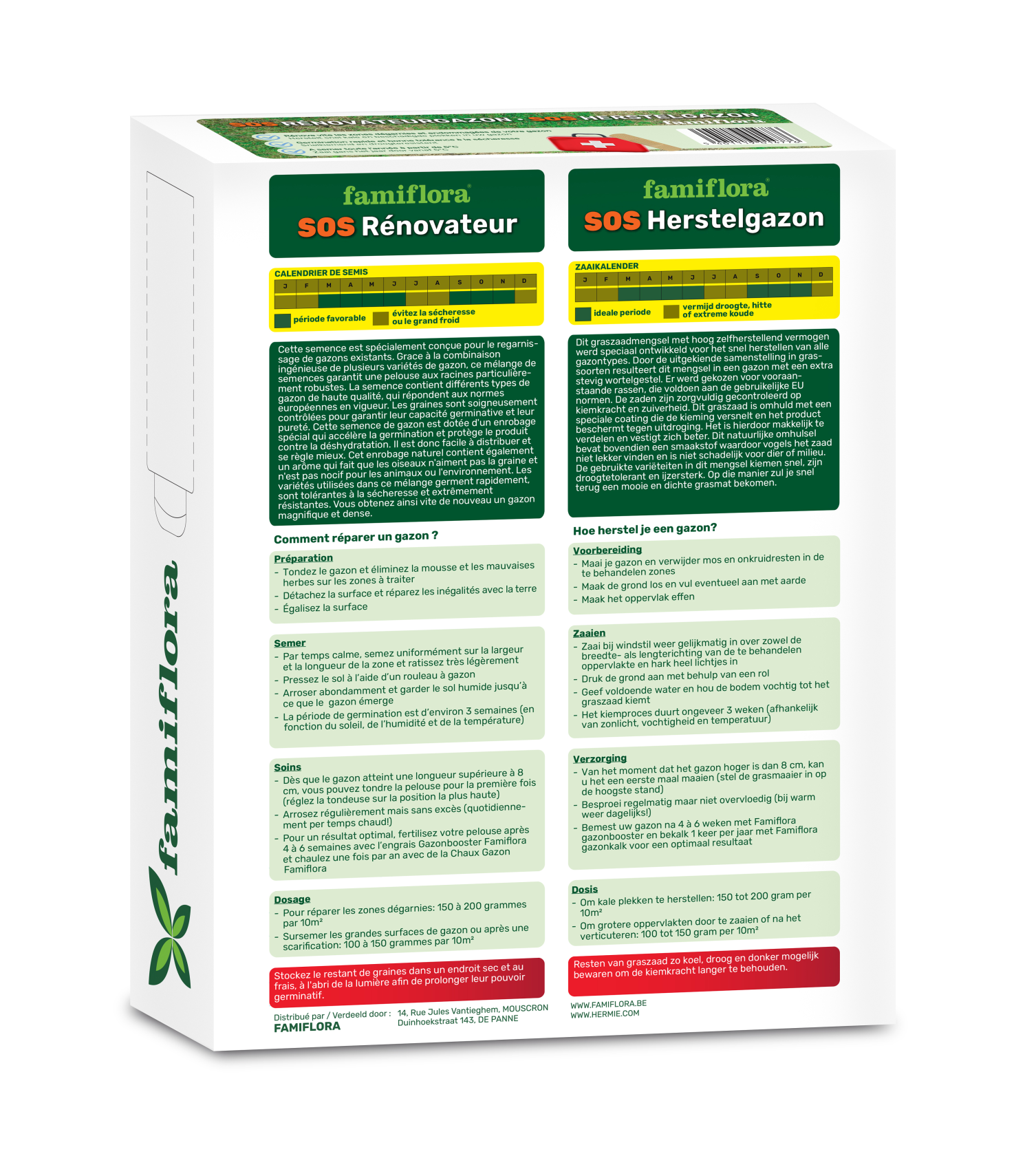 Famiflora SOS herstelgazon graszaad is speciaal ontwikkeld voor het herstellen en doorzaaien van een bestaand gazon. 🌿