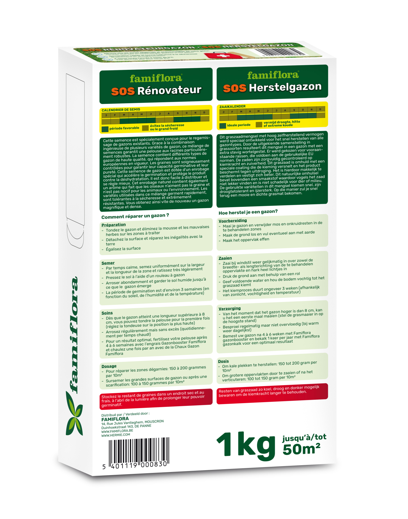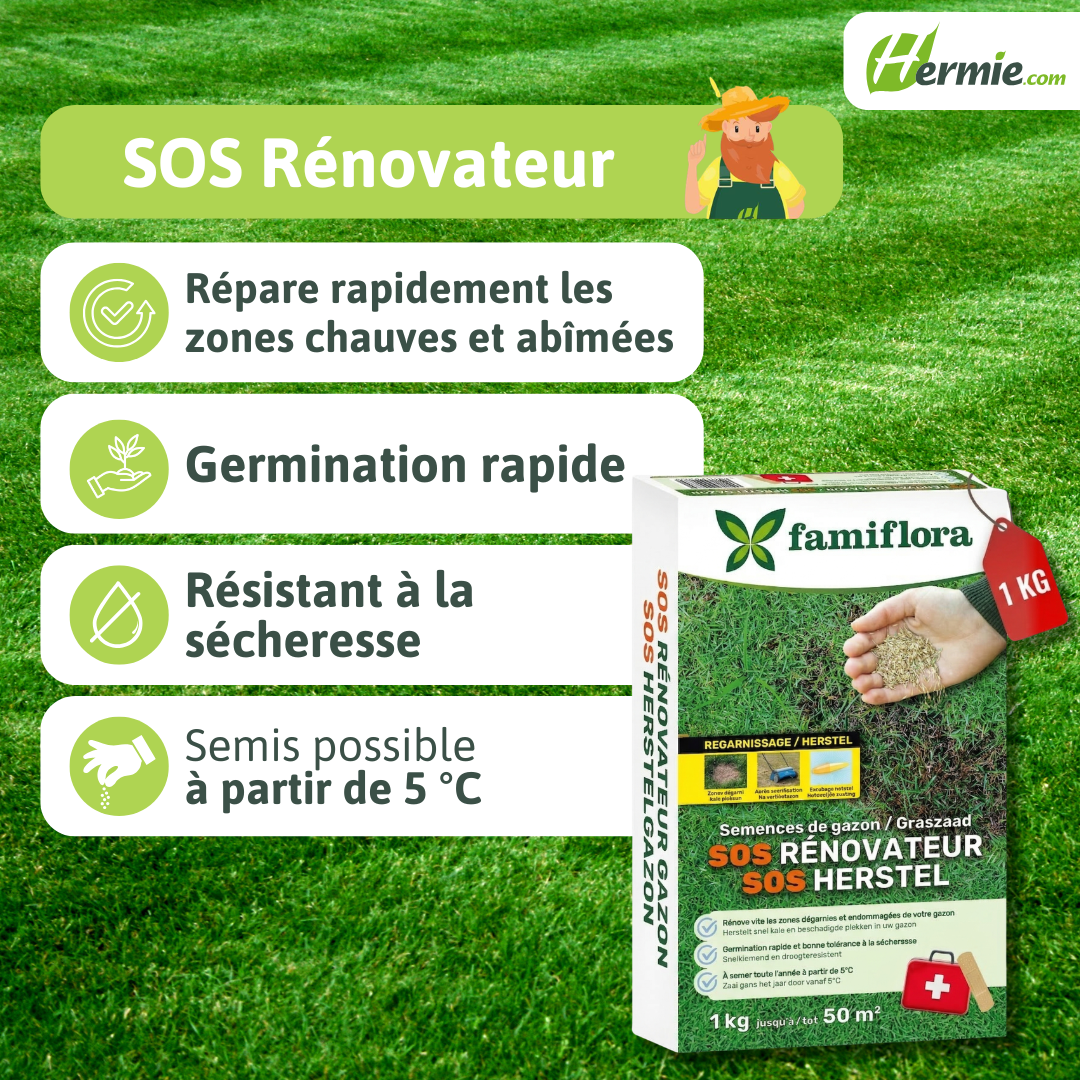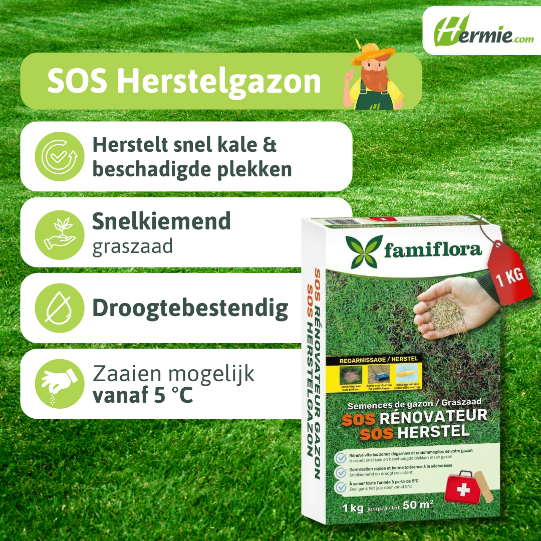Famiflora SOS herstelgazon graszaad is speciaal ontwikkeld voor het herstellen en doorzaaien van een bestaand gazon. 🌱