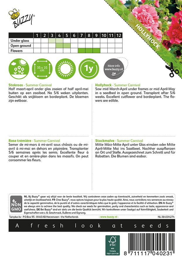 Productinformatie "Buzzy® Stokroos zaden - Summer Carnival "