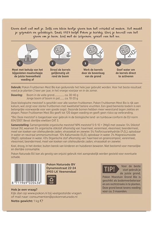Productinformatie "Pokon meststof voor fruitbomen - 1 kg - voor 10m² - bio"