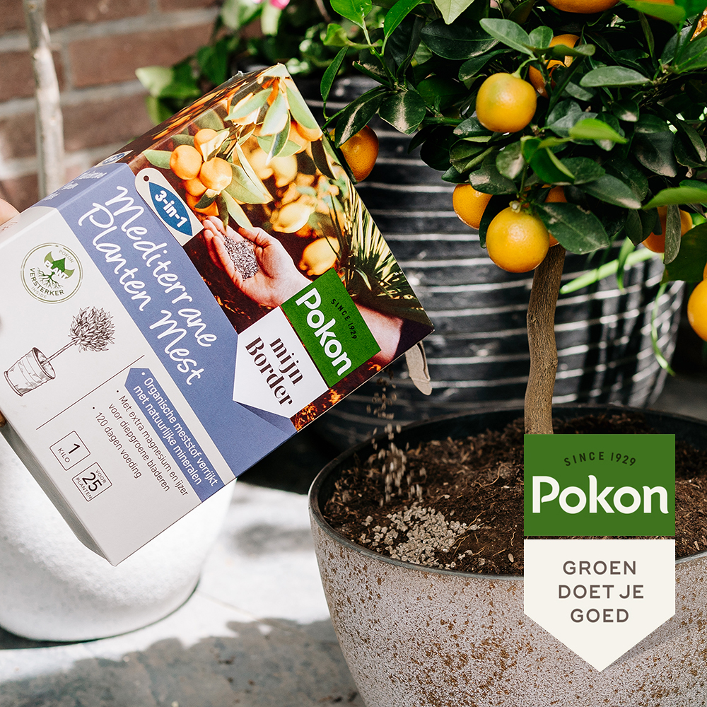 Geef je mediterrane planten de juiste voeding met Pokon Meststof voor Mediterrane Planten. Deze speciaal samengestelde meststof ondersteunt de groei, bloei en vitaliteit van zuiderse planten zoals olijfbomen, citrusplanten, vijgen en lavendel.