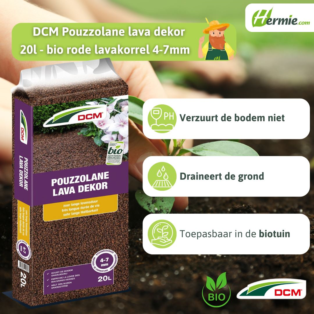 Wil je jouw kamerplanten niet alleen een strakke, moderne uitstraling geven, maar ook beter beschermen en verzorgen? DCM Pouzzolane Lava Dekor is een decoratief afdekmateriaal gemaakt van 100% natuurlijke vulkanische rode lava. De poreuze lavakorrels zorgen voor een optimale luchtcirculatie en helpen vocht vast te houden, waardoor je planten sterker en gezonder groeien.