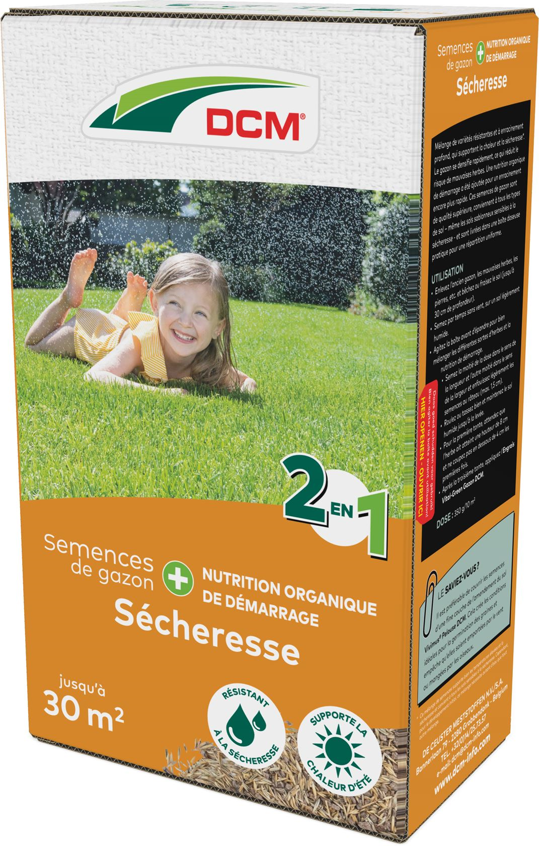 DCM Droogte Plus Graszaad zorgt voor een gazon dat bestand is tegen droogte en hitte. Dit graszaad is verrijkt met organische startvoeding. 🌱