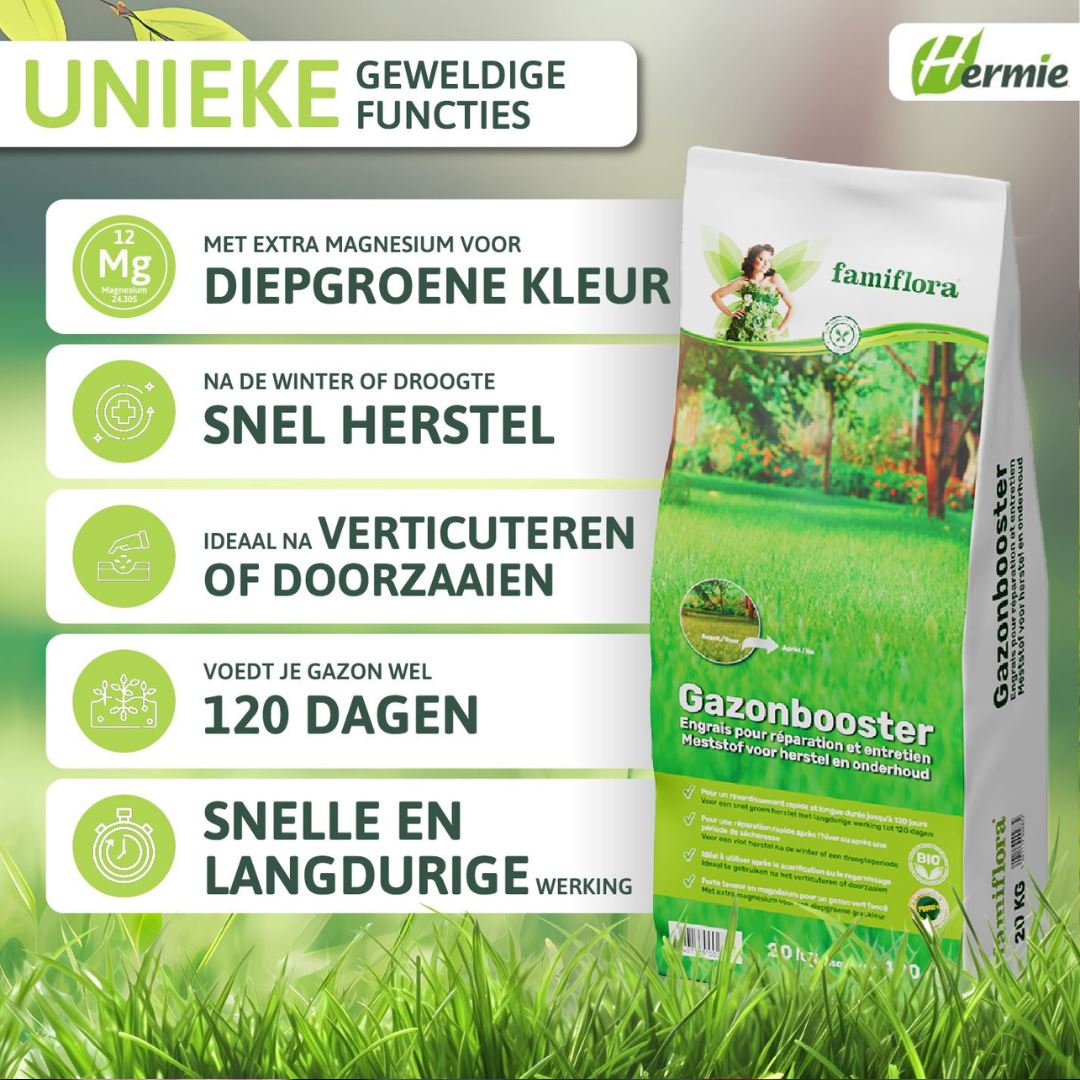 Met de Famiflora Gazonbooster is het gras altijd groener! 🌱
