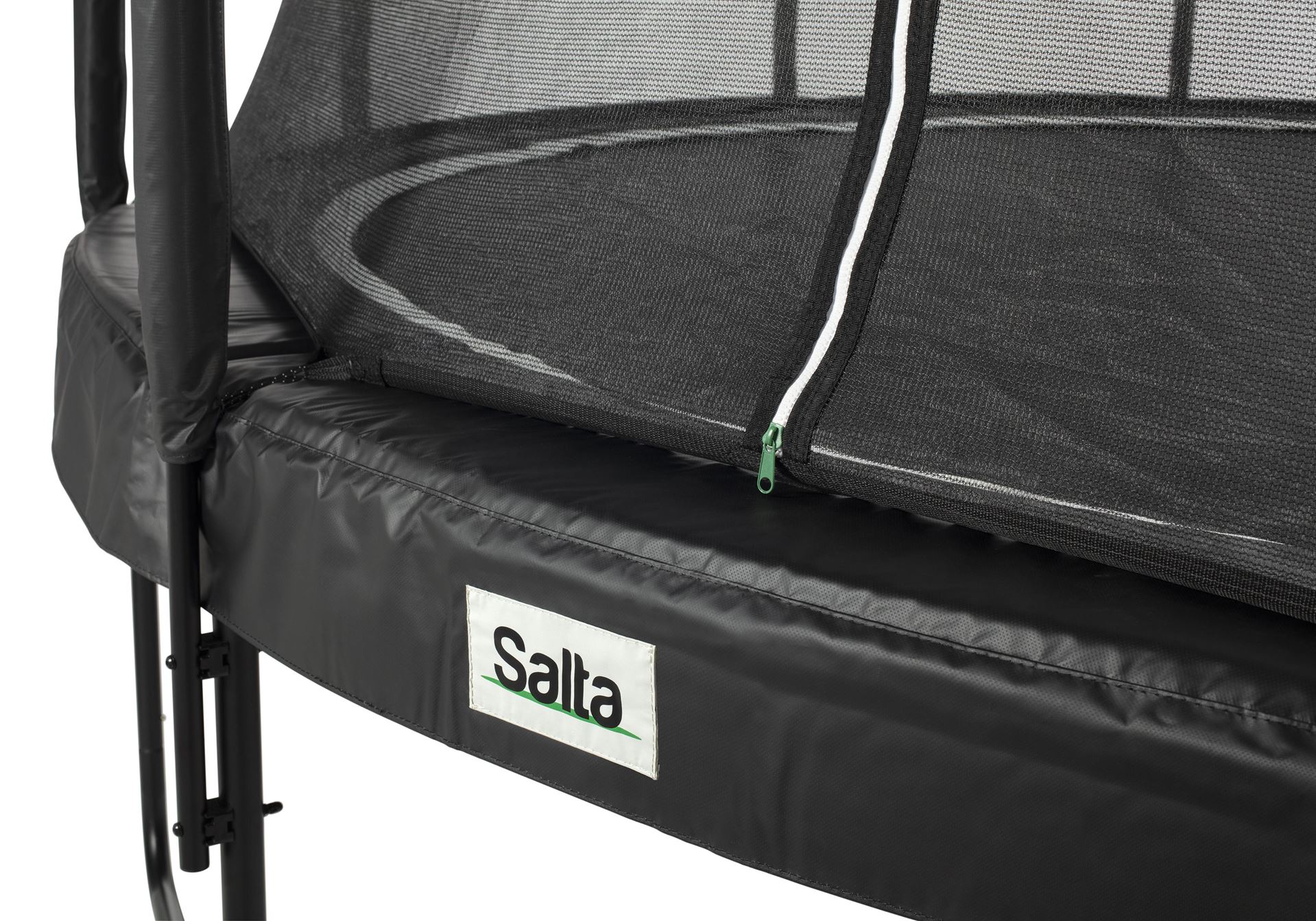 De Salta Premium Black Edition is met zijn elegante en moderne vormgeving een echte eyecatcher in je tuin! De trampoline ziet er niet alleen elegant uit, maar is ook gecreëerd van Hoogwaardige materialen. ✅Premium kwaliteitDe Premium Black Edition is uitgerust met een sterk en stabiel frame dat dubbelzijdig is gegalvaniseerd en gepoedercoat aan de buitenkant. De goudkleurige veren zijn conisch van vorm zodat je fantastische sprongen kan maken en zacht kan landen. Een geweldige springervaring! Om de veren goed te bedekken is de Premium Black Edition voorzien van een weerbestendige veiligheidsrand met extra lange rok. Het fijnmazige net wordt strak gespannen door de stevige palen die worden beschermd door schuimstof omhulsels. Zo vangt het veiligheidsnet je altijd veilig op.