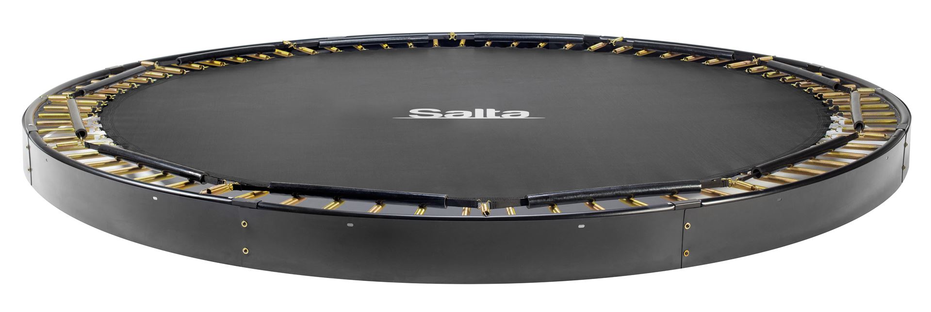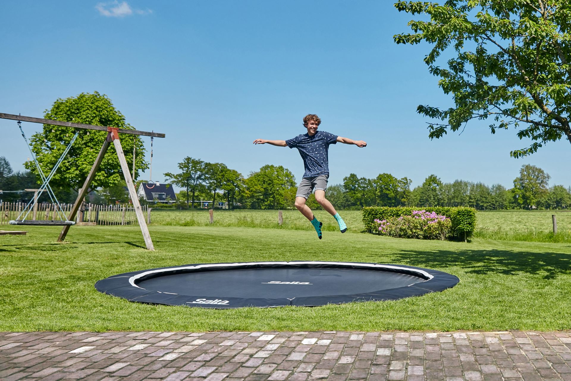 De Salta Royal Baseground is een bijzonder innovatieve trampoline van topkwaliteit die op gelijke hoogte ligt met het gras. De trampoline is hierdoor volledig geïntegreerd met je tuin!✅Air Performance SystemDe Royal Baseground onderscheidt zich door het speciaal ontwikkelde en gepatenteerde ‘Air Performance System’. Dit ventilatiesysteem zorgt voor voldoende ruimte tussen de springmat en de veiligheidsrand, wat resulteert in een goede luchtcirculatie. Met het Air Performance System ben je verzekerd van dynamische en geluidloze sprongen en ervaar je fantastisch springcomfort!✅Royale beschermingDe buitenzijde van de Royal Baseground is uitgerust met stevige panelen die zorgen voor een zeer stabiele fundering. Het duurzame en robuuste frame is dubbel gegalvaniseerd en voorzien van een zwarte poedercoating om roestvorming tegen te gaan. De zwarte veiligheidsrand van de Royal Baseground bestaat uit stevig en hoogwaardig PVC-materiaal. Door het handige net-systeem dat aan de veiligheidsrand is bevestigd, is het voor kinderen onmogelijk om in aanraking te komen met de veren. Bovendien loopt de rand aan de buitenkant mooi door over het gras zodat kinderen de trampoline veilig kunnen betreden.