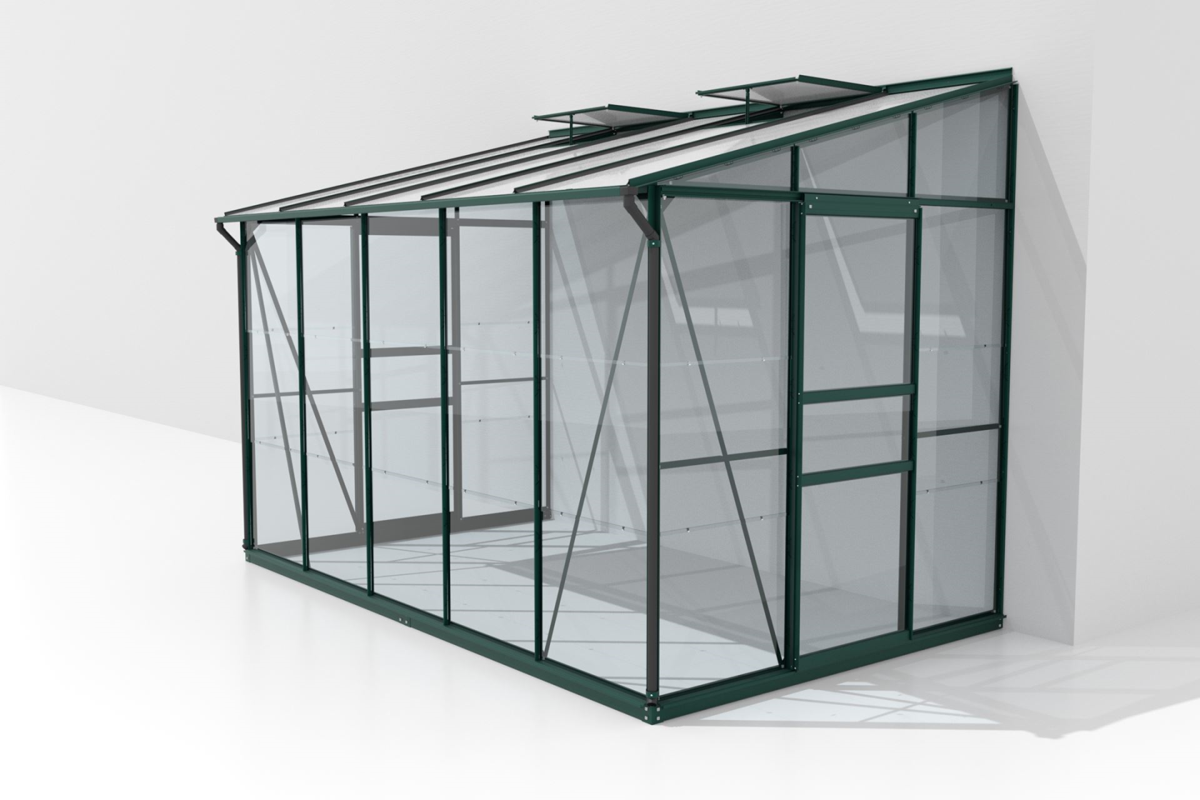 Wat de Ida-serie uniek maakt, is zijn veelzijdigheid en de aandacht voor detail in het ontwerp. De serres zijn uitgerust met handige schuifdeuren en een of twee dakramen, afhankelijk van het model, wat zorgt voor een efficiënte ventilatie en eenvoudig toegang. De standaard regengoot zorgt ervoor dat je gemakkelijk regenwater kunt opvangen en hergebruiken. Deze serie serres vereist een stevige achterwand zoals een huis- of tuinmuur, waardoor ze stabiel en veilig geplaatst kunnen worden.