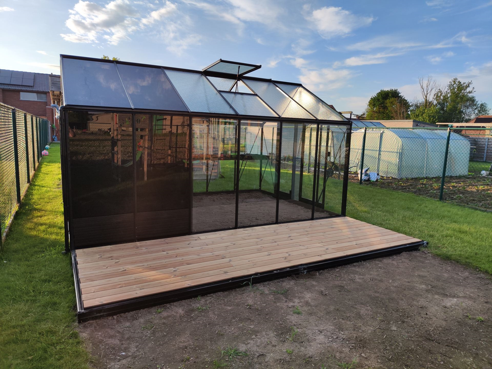 Je kan er zelfs een heuse tuinkamer van maken met een houten vloer. Of je de serre nu gebruikt om zelf plantjes te stekken en groentes te zaaien of als een extra leefruimte in jouw tuin, het is een heuse blikvanger!