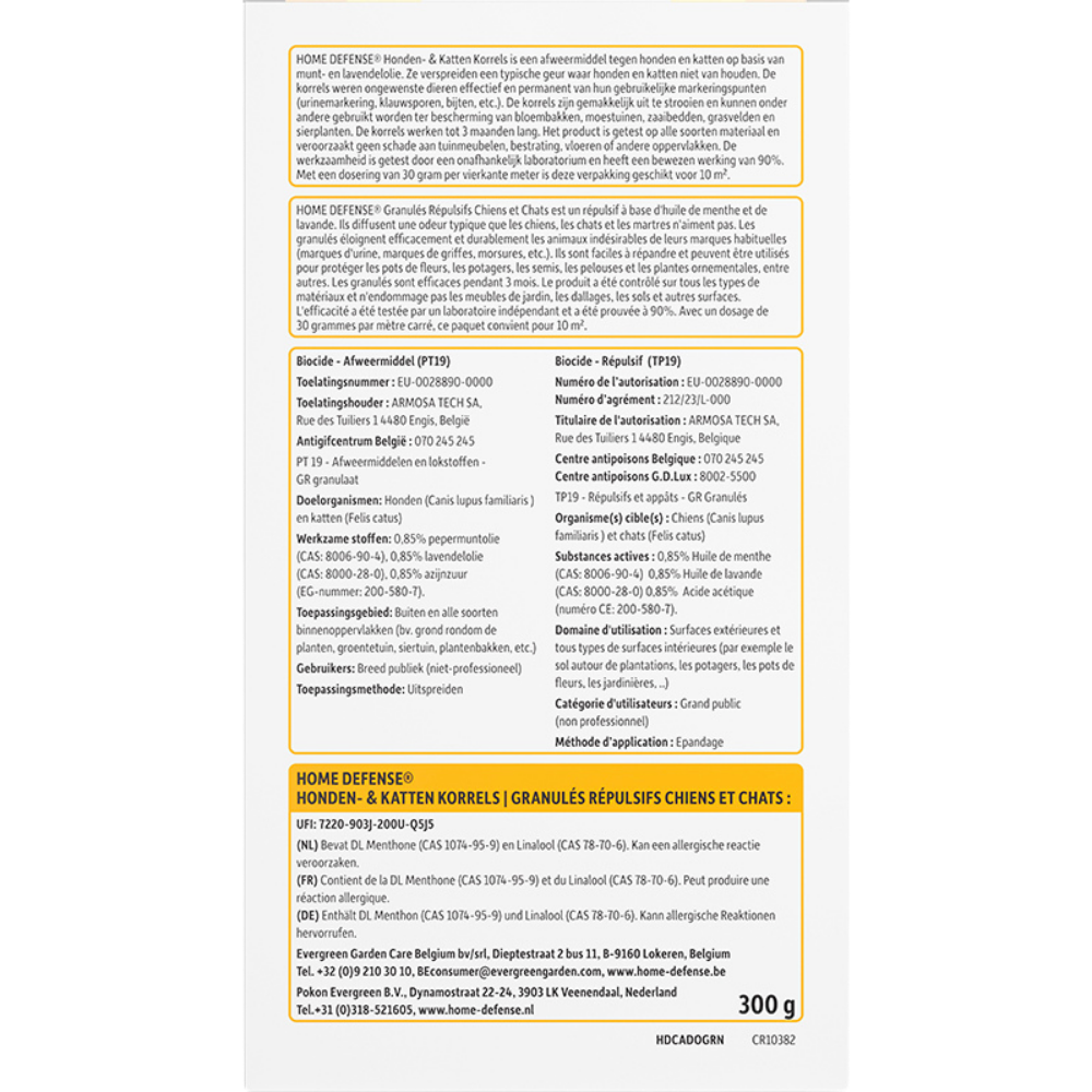 Productinformatie "HOME DEFENSE® Honden en Katten Afweermiddel Korrels 300g"
