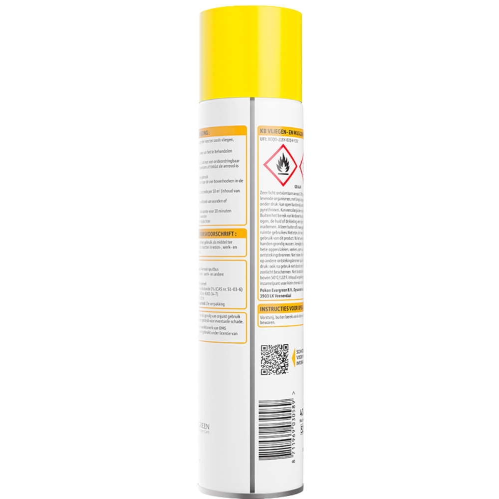 Met een inhoud van 400 ml biedt deze spray een snelle werking en betrouwbare oplossing voor het elimineren van vliegende insecten in huis.