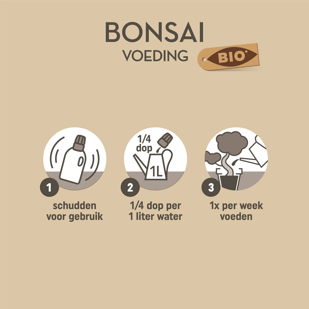 Kies vandaag nog voor deze natuurlijke bonsai voeding en geef je groene vriend de verzorging die hij verdient. Je bonsai zal je dankbaar zijn met een weelderige groei en een stralende uitstraling!