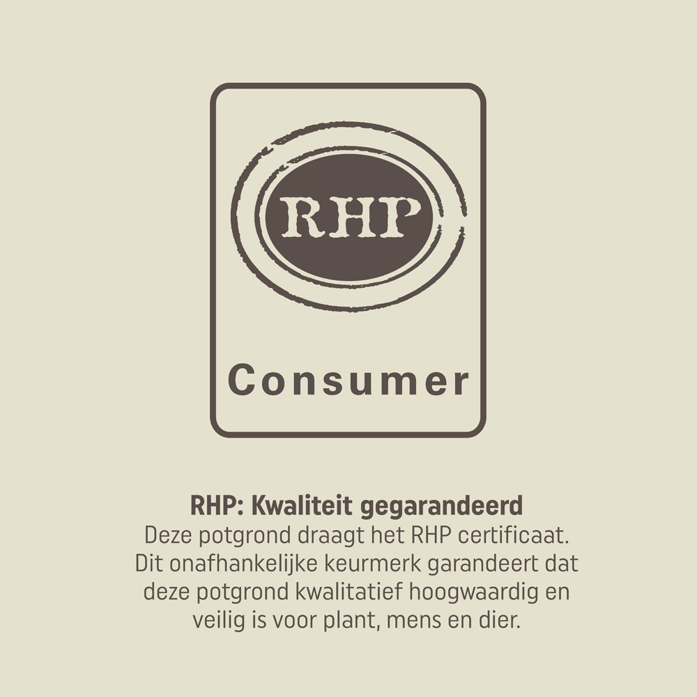 Samenstelling: Tuinturf, turfstrooisel, houtvezel, rijstkaf, groencompost, boomschors, kalk en meststoffen.