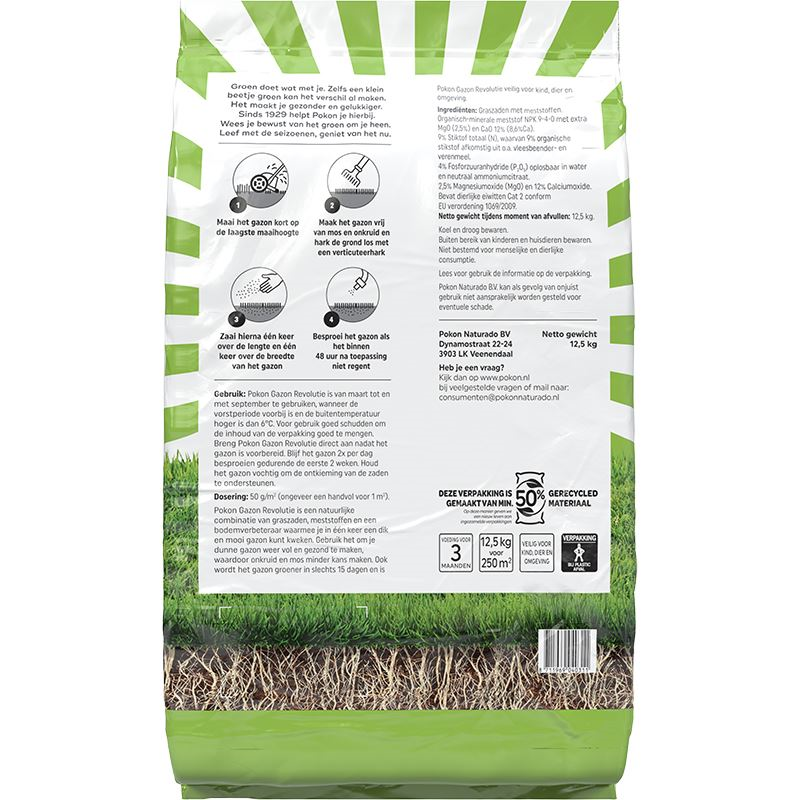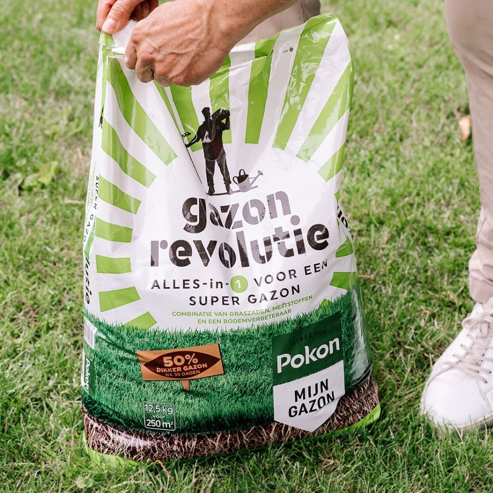 Productinformatie "Pokon gazonmeststof 12,5kg voor 250m² - Gazon Revolutie - 3-in-1"