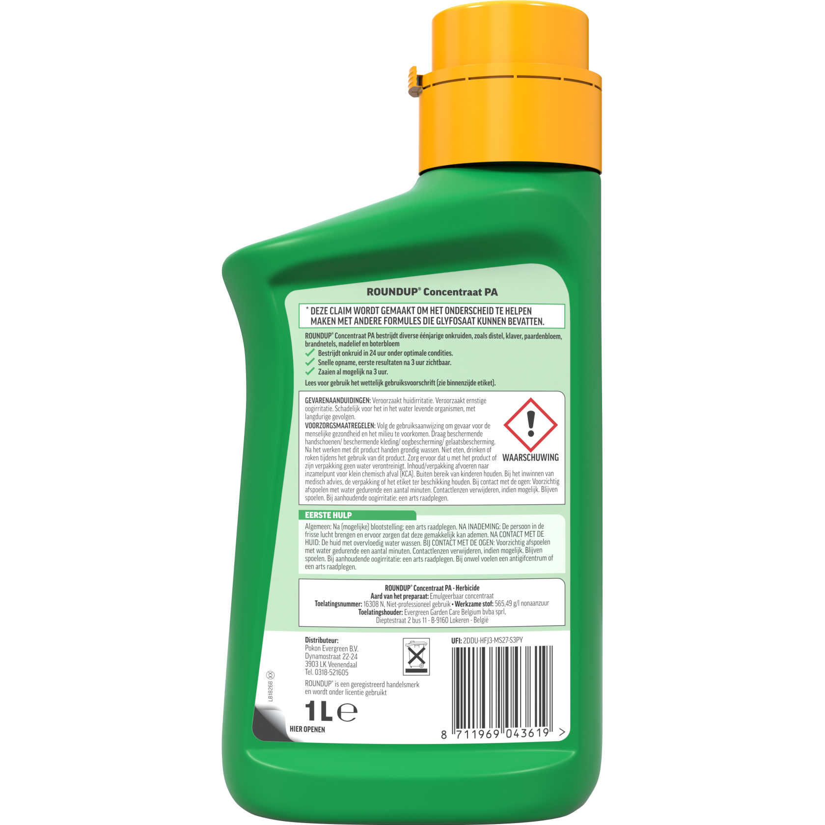 De ROUNDUP® PA Totaal Onkruidvrij Concentraat 1L is een krachtige en snelwerkende totale onkruidbestrijder voor het bestrijden van diverse éénjarige onkruiden zoals distel, klaver, paardenbloem, brandnetel, madelief en boterbloem. Dankzij de niet-selectieve werking worden alle groene plantendelen aangepakt, waardoor je volledige controle hebt over ongewenste begroeiing.