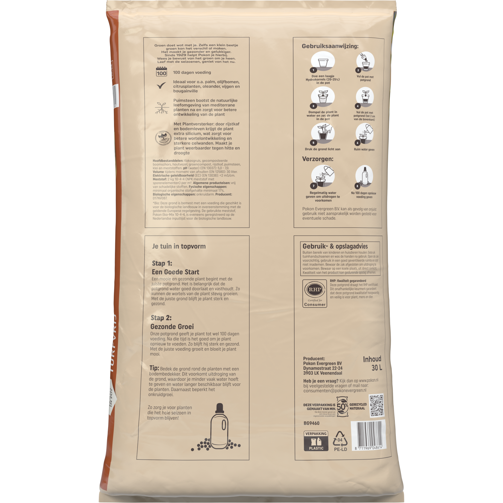 Productinformatie "Pokon Bio Mediterrane Potgrond - 30L - Turfvrij - Biologisch - 100 dagen voeding"