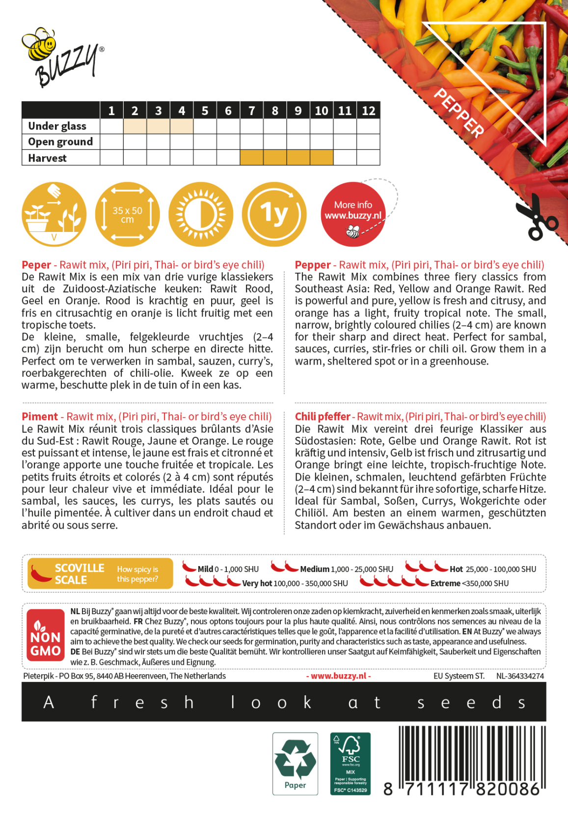 Productinformatie "Buzzy® Culinary Peppers Rawit Mix - Rood, Geel & Oranje - Pittige Aziatische Mix"