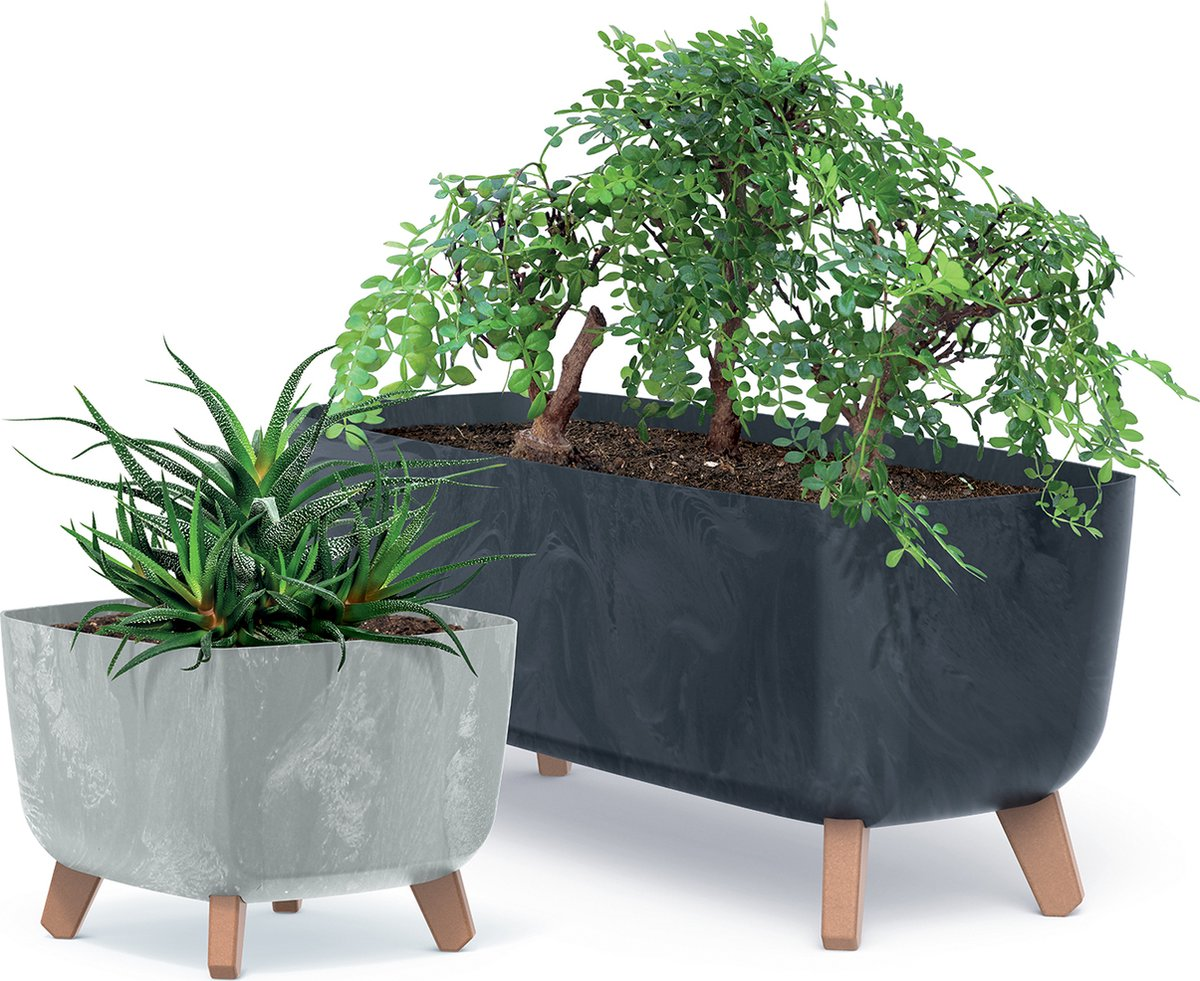 Geef je planten het podium dat ze verdienen met de Gracia Case. Deze rechthoekige bloempot valt direct op door zijn pootjes (geïntegreerd in het design) met een stijlvolle houtlook, gecombineerd met een body in stoer beton-effect. 🏛️ Het resultaat? Een luchtig, modern en industrieel design dat niet massief oogt. Met een breedte van 39 cm is hij perfect voor op de vensterbank, een dressoir of op de tuintafel.