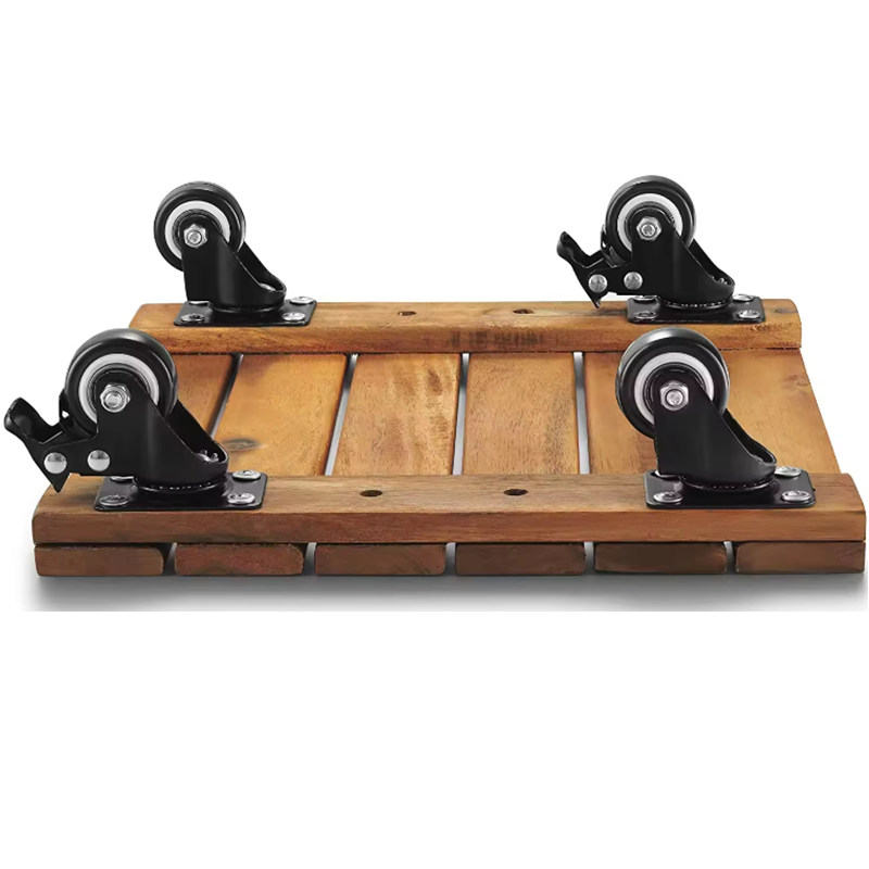Plantentrolley hout vierkant met 4 kunststof wielen 30x30x8,5cm