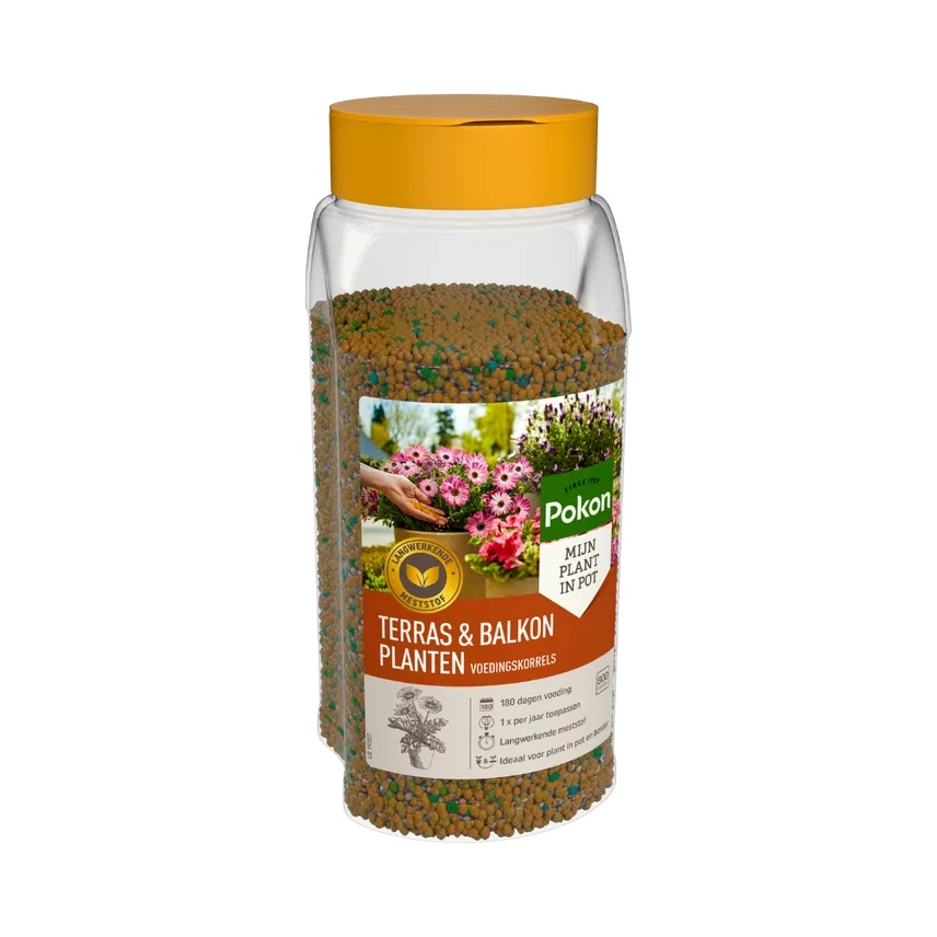 Productinformatie "Pokon Terras & Balkon Voedingskorrels - 800 gram - 180 dagen voeding"