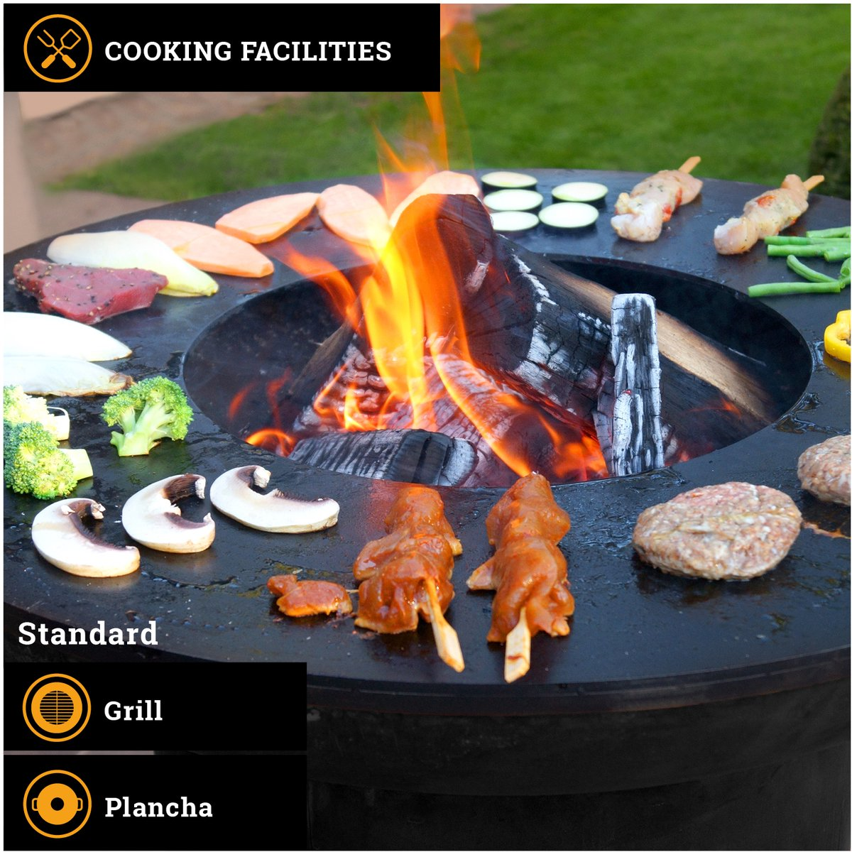 - Veelzijdig Plancha bakken: De robuuste bakplaat creëert meerdere hittezones, waardoor je probleemloos delicate visjes en grote steaks tegelijkertijd kunt bereiden.