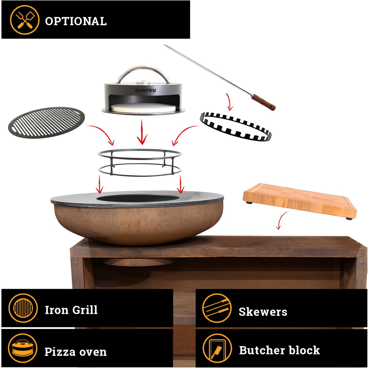 - Tip: Maak je buitenkeuken hélemaal compleet met het bijpassende BonFeu Butcherblock om je messen scherp en je werkblad krasvrij te houden!