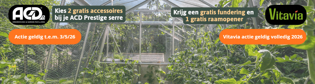 Zowel bij ACD serres als Vitavia serres bestaat een glazen serre sowieso uit veiligheidsglas. Tuinbouwglas was een optie, maar dit wordt steeds minder gebruikt en daarom hebben wij ervoor gekozen dit niet meer in het gamma op te nemen.